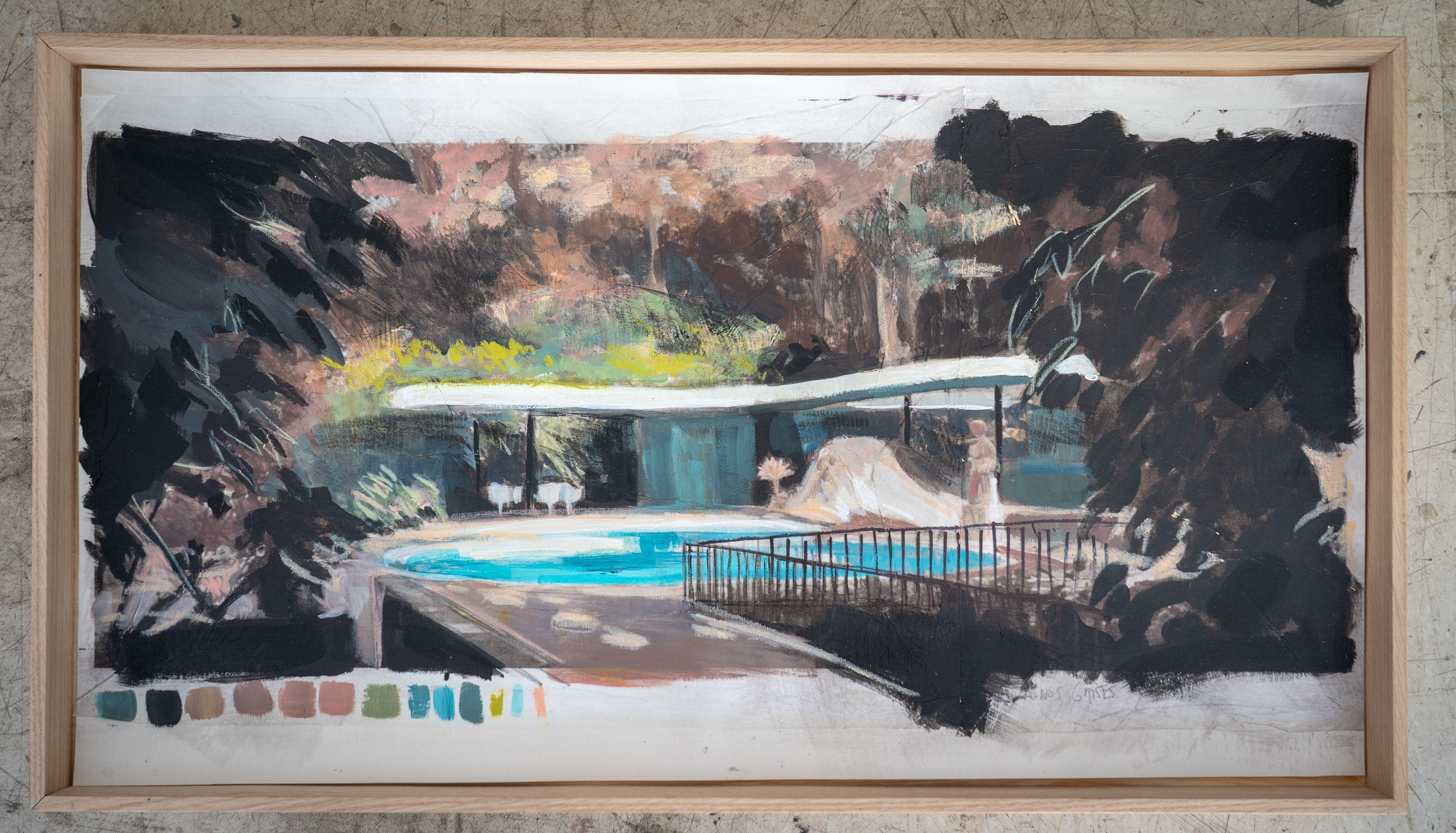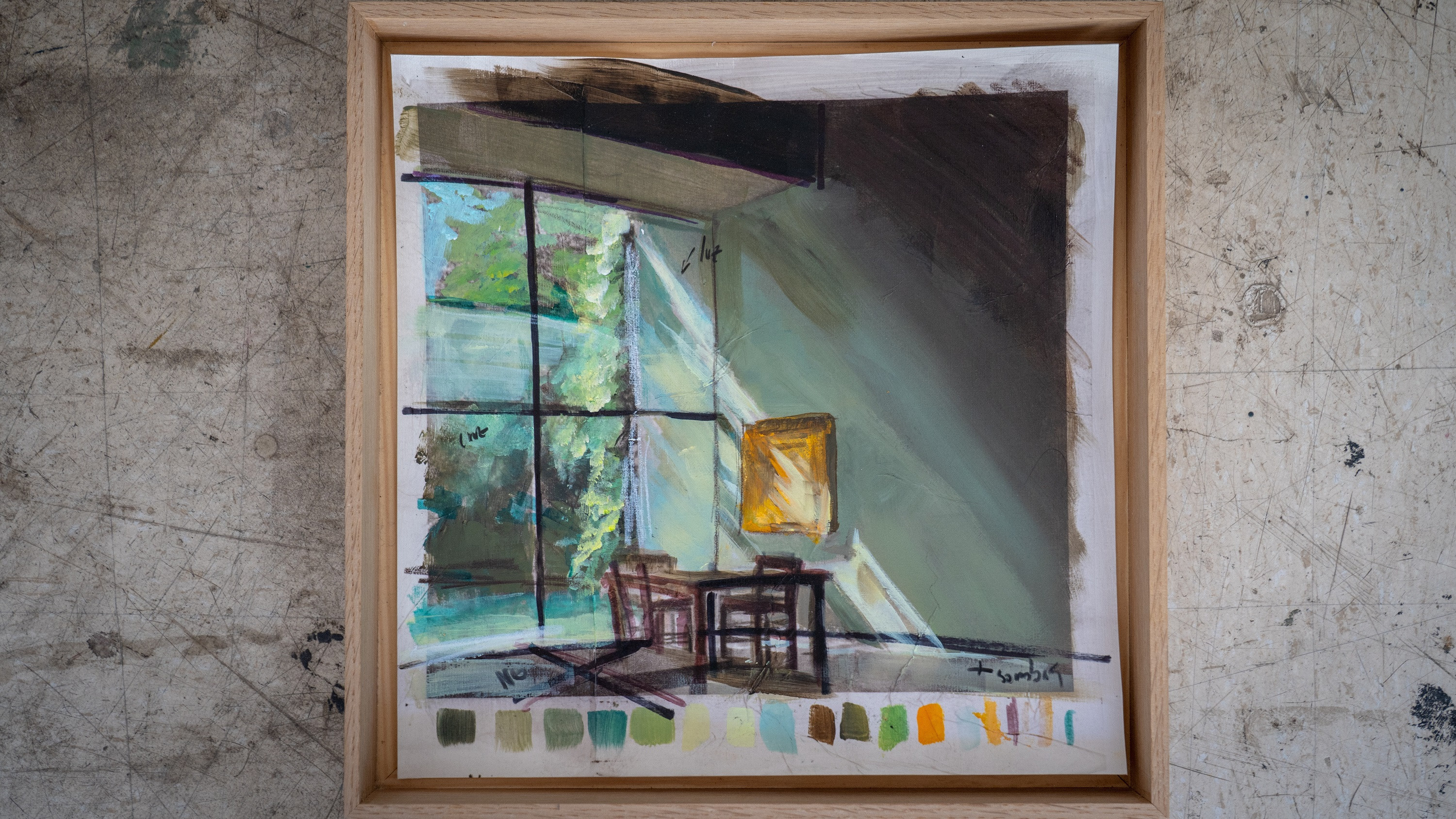 Además de su producción pictórica, Sarrias ha participado en varios proyectos audiovisuales centrados en arquitectura icónica, junto a su pareja, el cineasta Morrosko Vila-San-Juan. Su último trabajo es un largometraje de docuficción “La Ricarda. Melodía de una casa”, sobre la icónica Casa Gomis, que se estrenará en cines a finales de 2026.