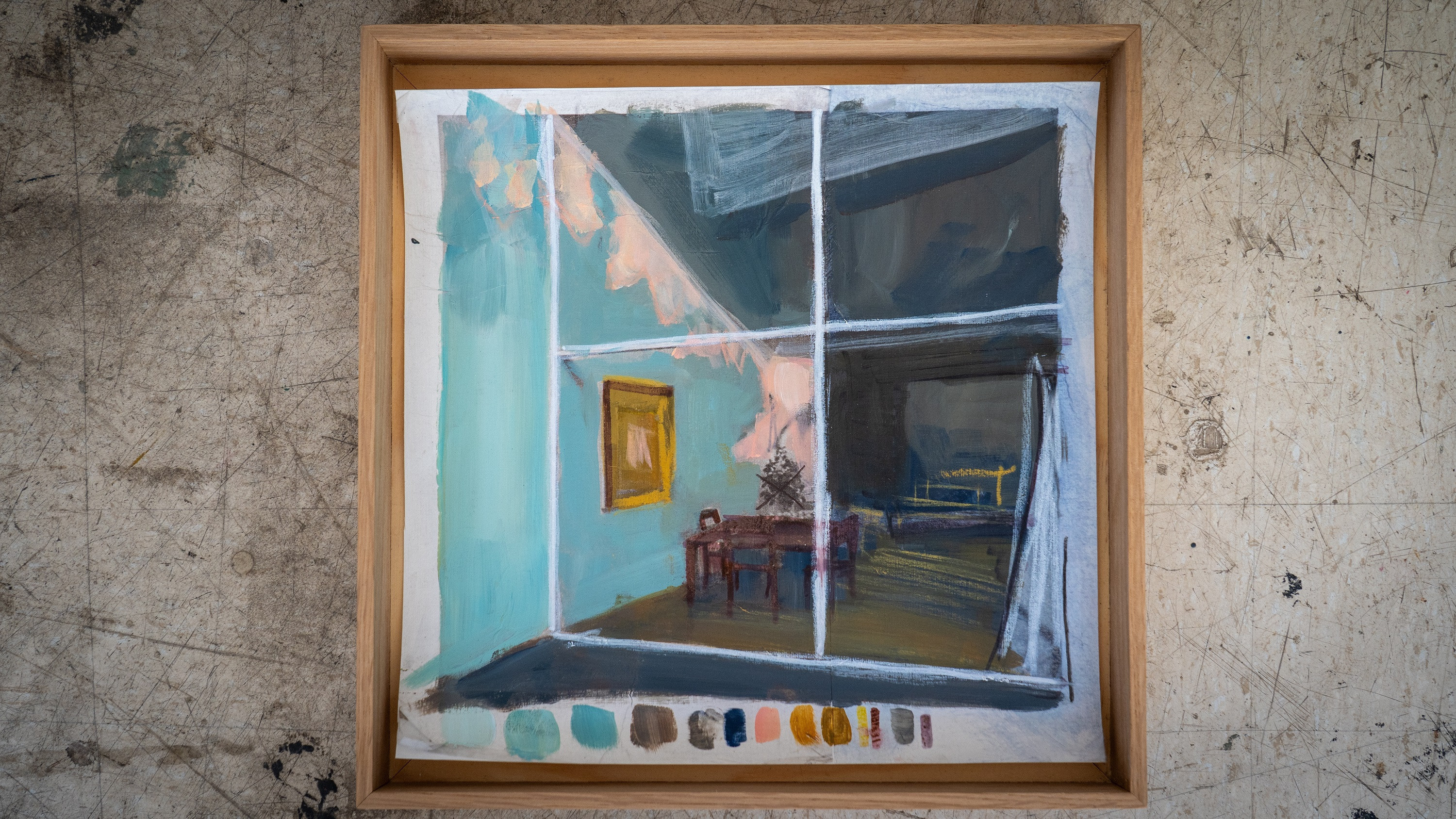 Bea Sarrias es hija de Barcelona, ciudad donde ha encontrado las temáticas y los espacios que definen las líneas más significativas de su obra: la arquitectura y la luz. Sarrias no pinta edificios, sino que retrata espacios, lo que nos permite imaginar o entrever a los seres que han dejado su huella a través de los objetos que los habitan. Su trabajo es de carácter antropológico e integra investigación, fotografía e incluso vídeo para documentar la vida presente y pasada de los edificios, que insinúan una presencia y ausencia simultáneas de sus moradores. Su pintura, realista, se fundamenta en la obra de importantes arquitectos españoles e internacionales, lo que le ha valido reconocimientos por su virtuoso manejo de la luz y las sombras.