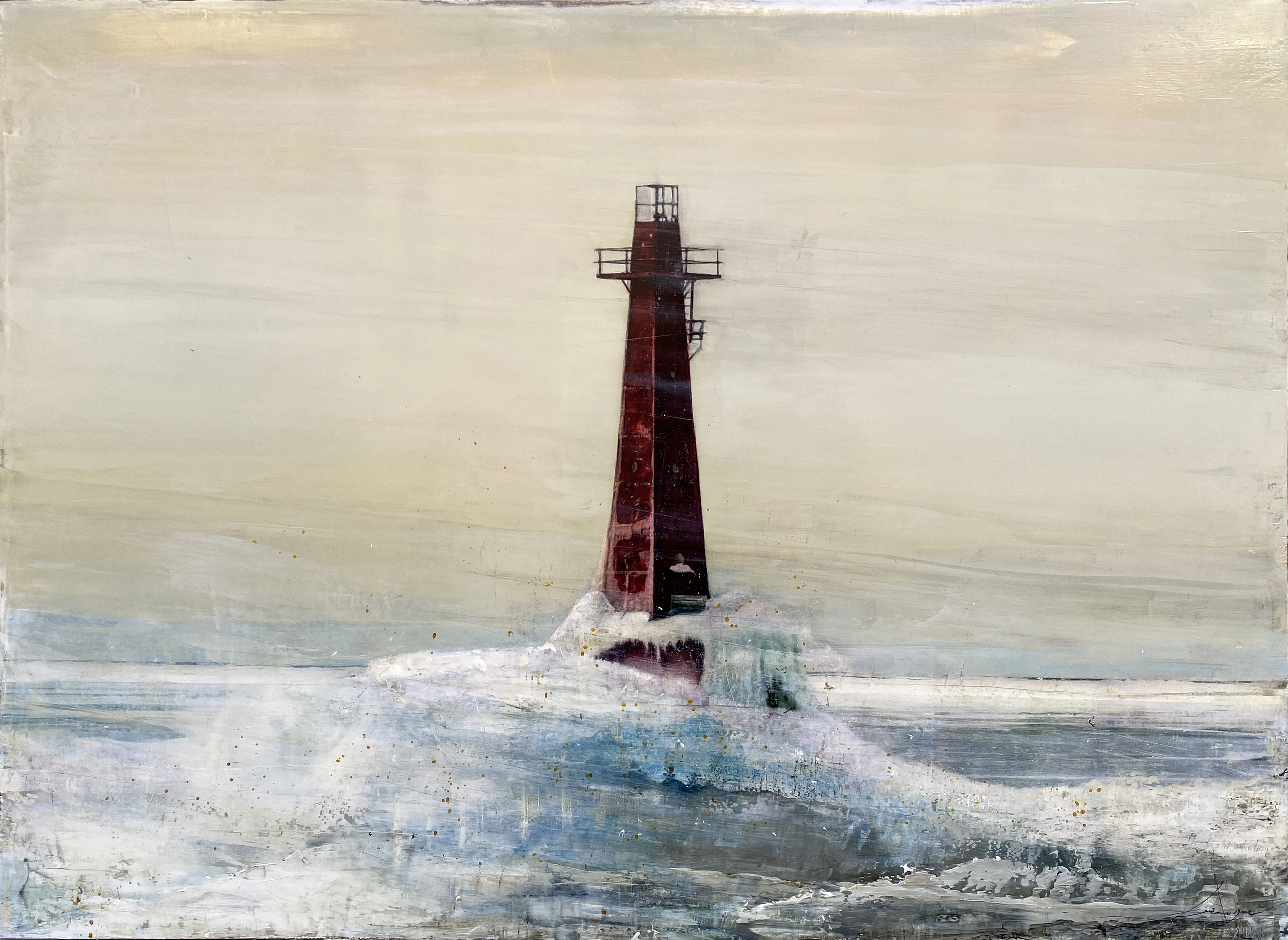 Su personal mundo iconográfico incluye elementos como faros y casas, lugares que son al mismo tiempo hogar y refugio, pero también decadentes carpas de circo “en mitad de ninguna parte”.